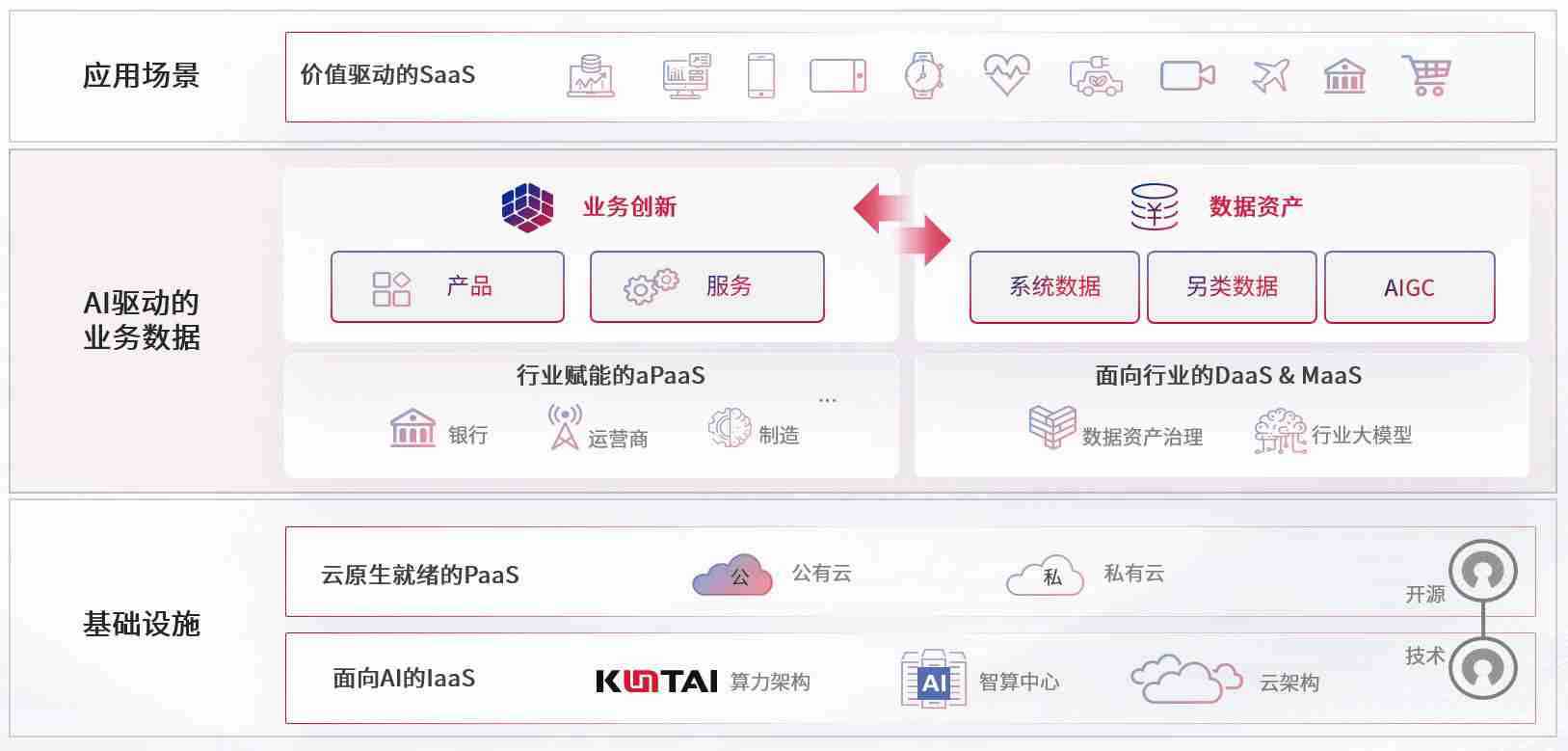 数字时代,,围绕企业数字化转型的关键要素,,,,尊龙数码开创性的提出数云融合战略和技术体系框架,,着力在云原生、、、、数字原生、、AI原生和信创产业上架构产品和服务能力,,,,为处在不同数字化转型阶段的快消零售、、、汽车、、金融、、、、医疗、、政企、、、教育、、运营商等行业客户提供泛在的敏捷IT能力和融合的数据驱动能力,,构建跨界融合创新的数字业务场景和新业务模式,,,,助力企业级客户建立面向未来的核心能力和竞争优势,,,,全面推动社会的数字化、、、、智能化转型升级。。。。