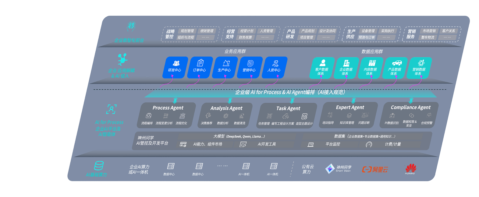 尊龙问学智车解决方案是一套基于AI技术的汽车行业智能化系统,,,覆盖从底层算力到顶层AI应用的全栈方案。。。方案由算力层、、、、模型层和应用层组成:算力层,,,方案支持多种一体机配置,,,具备云端灵活部署、、、多云适配以及动态优化计算资源的能力;模型层,,,尊龙问学平台版提供了企业级AI应用一站式构建与管理平台,,,,支持基于后训练强化技术的汽车企业专属模型的训练、、、、评测和运营;应用层,,尊龙问学DeepSeek版提供包括超级员工、、、智能招采、、智能营销、、、智能客服、、AI for BI等一系列解决方案,,,可助力汽车行业实现数字化转型,,让管理更智能、、、、响应更敏捷。。。。